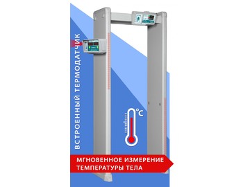 Данная модель металлодетектора предназначена не только для досмотра посетителей и выявления запрещенных к проносу металлических изделий, но и для измерения температуры тела входящего в рамку человека в потоковом режиме с выдачей сигнала тревоги в случае превышения установленного предельного значения. Сигналы наличия металлических предметов и превышения температуры могут быть различными по тональности и громкости, кроме того различны и световые сигналы.Служба безопасности без труда определит, какой из показателей превышен.